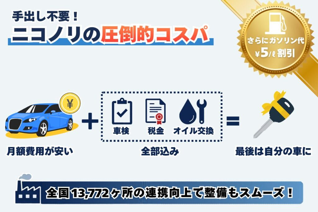 コストを抑えて、安心便利なカーライフを始めたいなら、「ニコノリ」で間違いなしです!