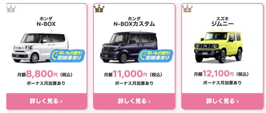 人気の車種も即納可能なので、すぐに希望の車に乗りたい!という方にもおすすめ。