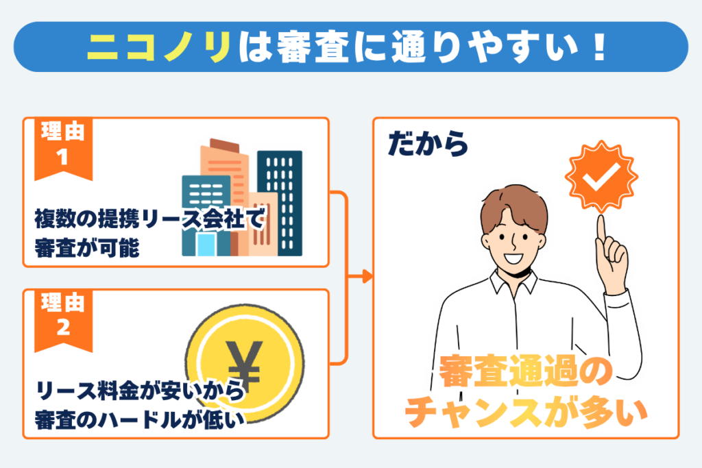 複数のリース会社(信販会社)と提携しているため、審査に通りやすいのが魅力!