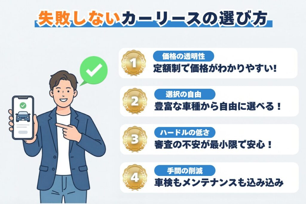カーリースは、自分のライフスタイルに合ったプランを選ぶのがポイント。
