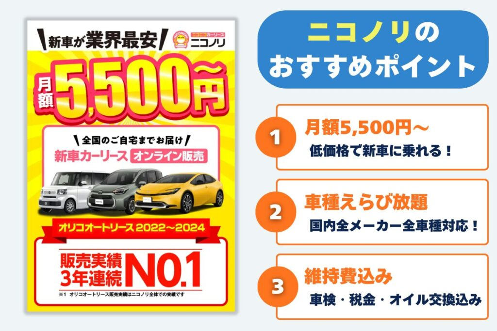 ニコニコレンタカーが展開する「ニコノリ」は、価格の安さにこだわった業界トップクラスの実績を持つカーリース会社です。
